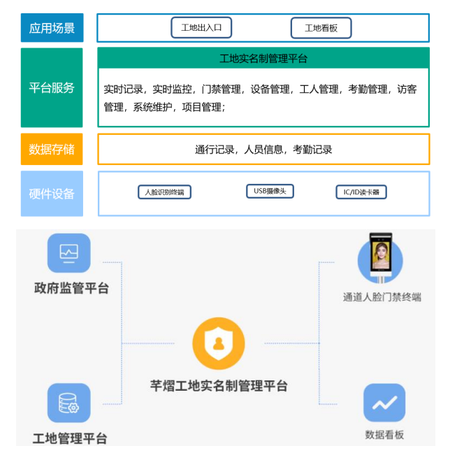 基于《建筑工人實名制管理辦法》文件規定,通過工地實名制人臉門禁管理系統和人臉考勤門禁等終端設備,對工地人員數據實時采集,實現工人考勤及出入實名管理,讓工地更規范、更安全、更高效。