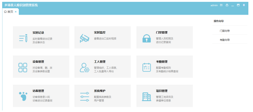 芊熠多場景人臉識別管理系統,主要實現對工地出入口實時記錄、實時監控、門禁管理、考勤管理、工人管理、設備管理、訪客管理、系統維護、項目管理等管理。