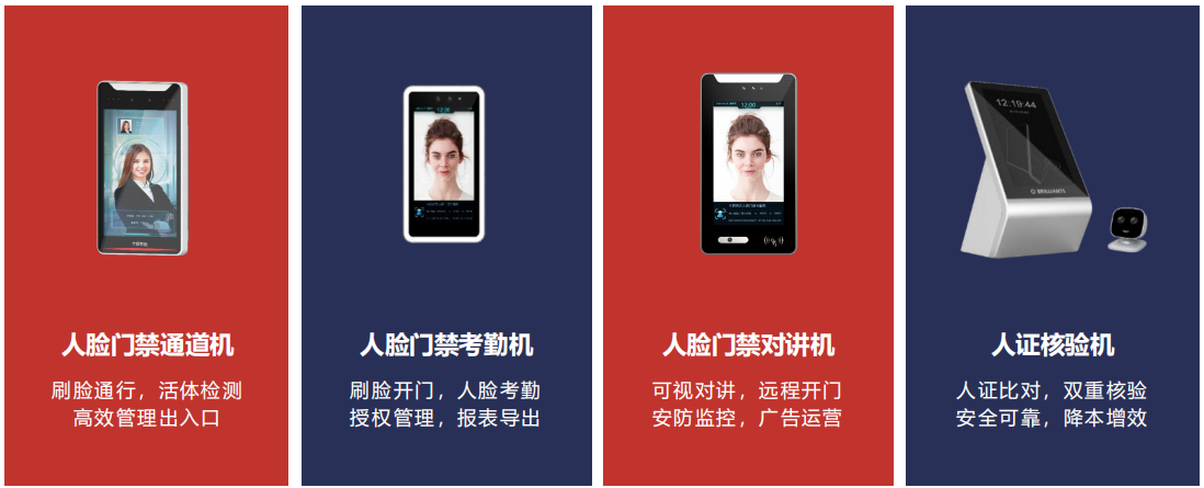 ? 產品:基于智慧園區人臉門禁云平臺(以PC端瀏覽器、APP、小程序為功能載體),聯通各智能硬件終端(人臉門禁通道機、人臉門禁考勤機和人證核驗機等),實現人臉通行、人臉考勤、人證核驗、員工/訪客管理、權限管控、設備管理等一體化智能應用及高效管理,全面滿足各出入口的管控需求。