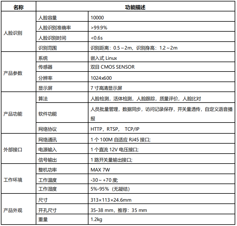 ? 人臉識別準確率高達 99.9%; ? 人臉識別速度小于 0.6 秒;